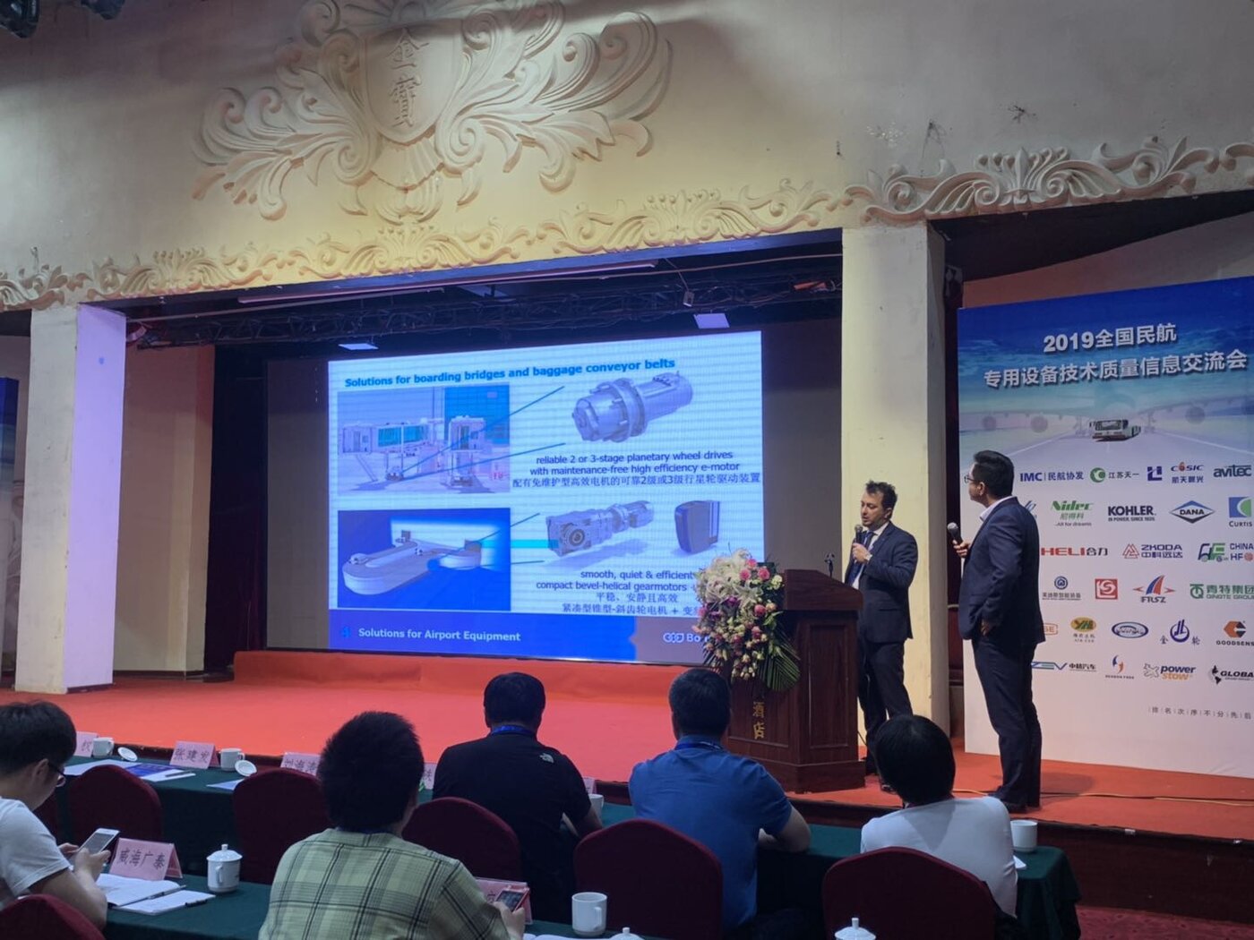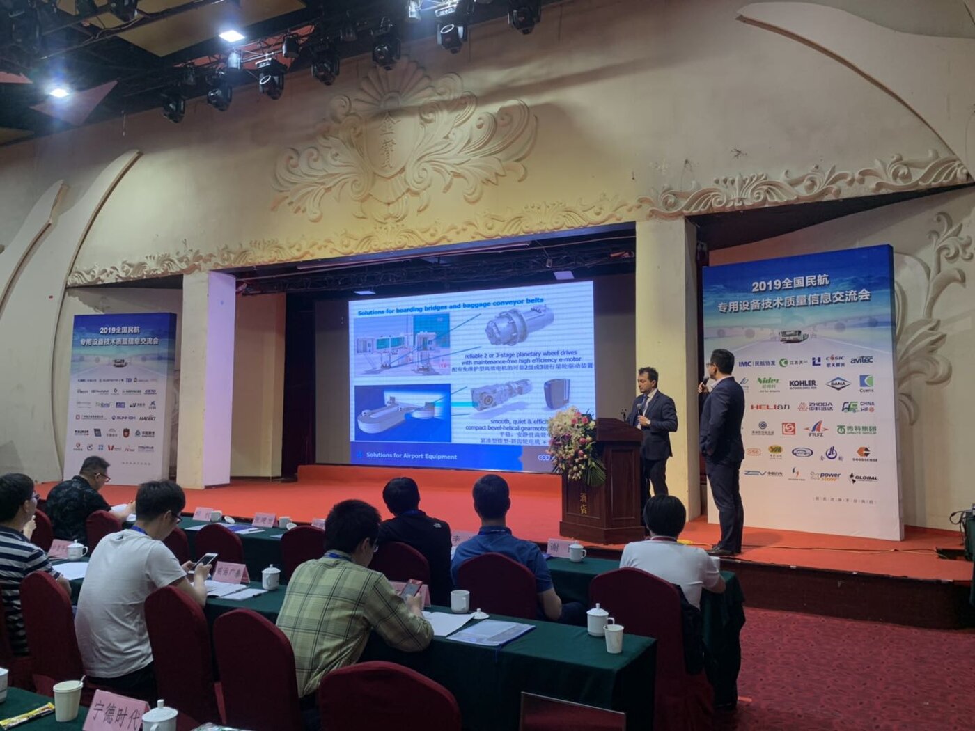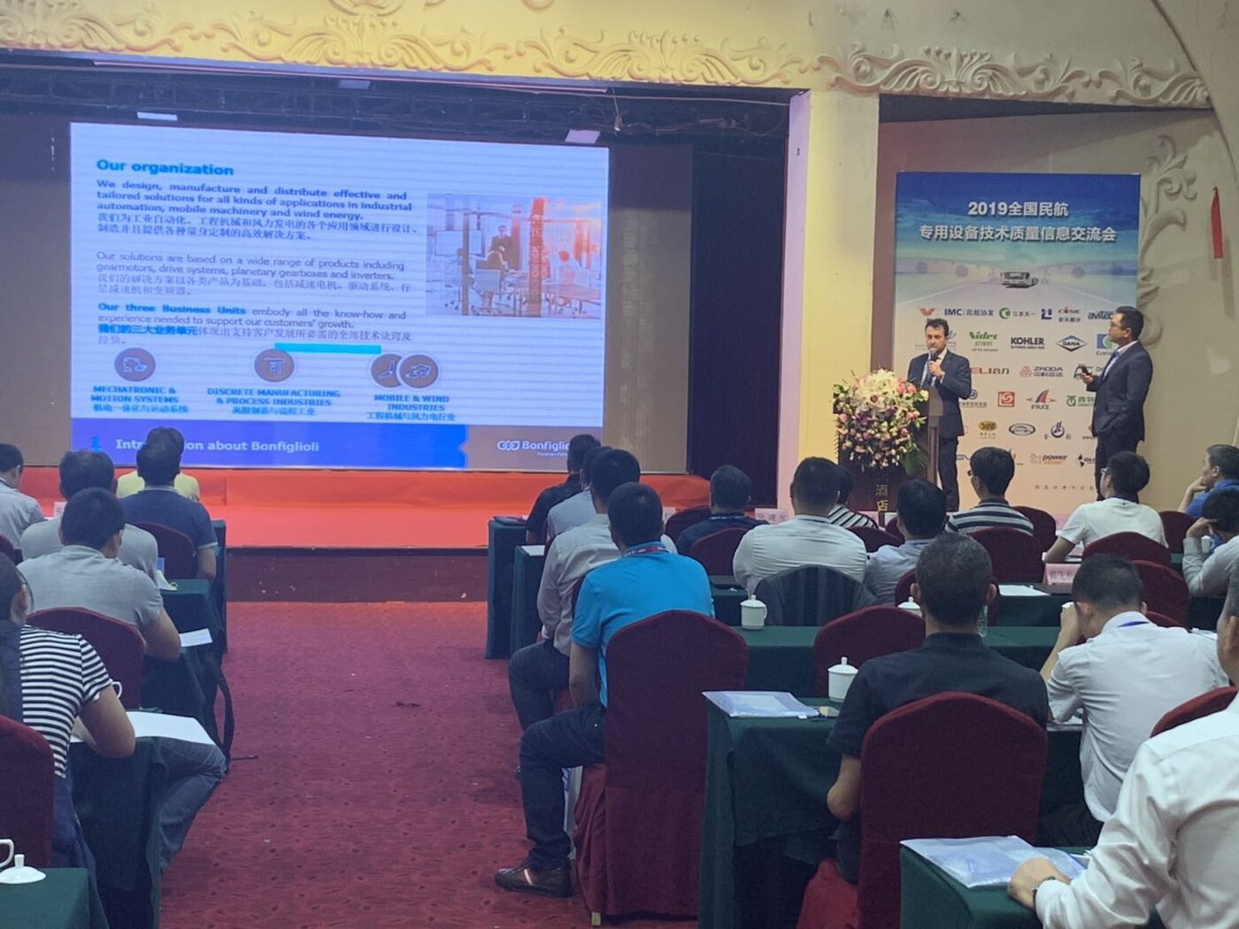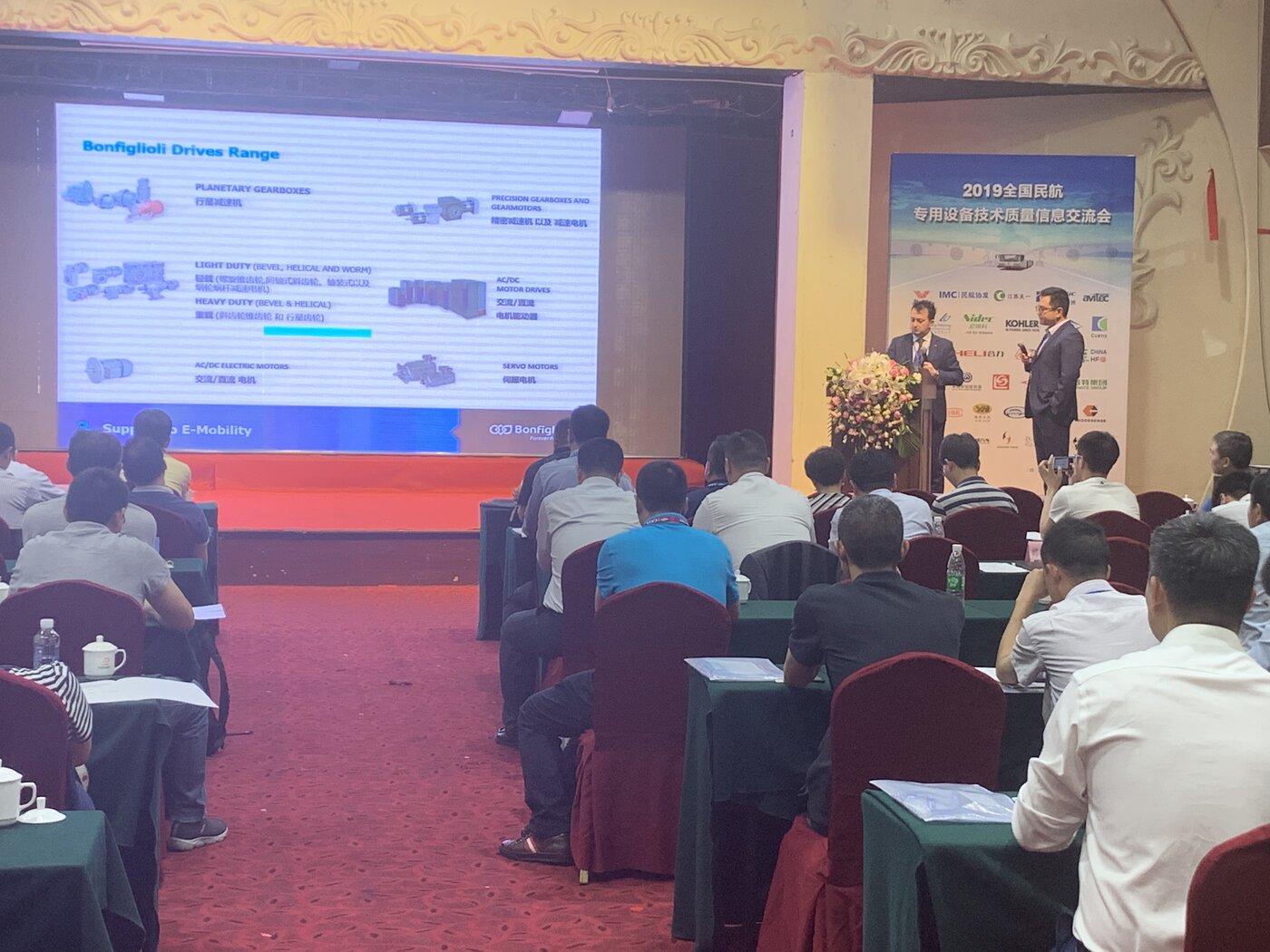 During the seminar, Massimo Palomba, the Global Sales Manager for E-Mobility of Bonfiglioli, gave a speech on the topic “Technology Drives Future and Improves Safety - Bonfiglioli Airport Application E-Mobility New Product Release”, introducing the new application of Bonfiglioli in the industry to the attendees: solutions for boarding bridges and baggage conveyor belts, people movers and mobile airport equipment, and a new axle dedicated to tow tractor equipment.