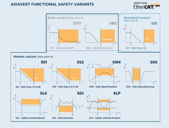 Certified to support key safety functions such as STO, SS1, SBC, SLS, SLP, and SOS, AxiaVert offers configurable safety variants that minimise the need for external components. With EtherCAT FSoE integration, AxiaVert ensures safety communication over the fieldbus—cutting cabling and installation costs, while boosting control integrity.