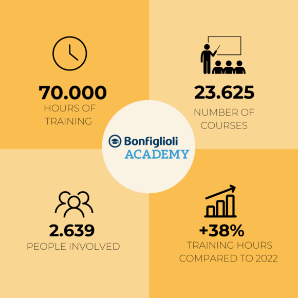 The Bonfiglioli Academy is our e-learning platform, within which there are four independent schools: Bonfiglioli Culture, Leadership Gym, Professional School and Technical Toolbox. Through a wealth of courses and modules, we are able to respond to the training needs of all Group employees, ensuring that they are armed with our core values and equipped with the relevant technical expertise. The Bonfiglioli Academy gives all employees the opportunity to map out their own educational journey completely independently.